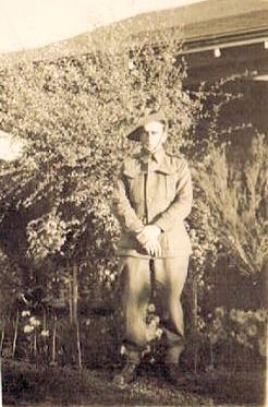 Above (row of 3 photos), Bobby poses with proud Dad and Mum. It is devestating to think that once Bobby sailed for the Middle East, he did not see his father again. The lower photo was posed in the Holy Land (probably at Mr Feigenbaum's worthy establishment) as a jest -- a postcard to send home and enthrall the rellies. Bobby portrays an Aghan brigand on the right. Just as an aside, Mum was visited by a policeman during the early 1940's and almost fainted. "Oh! I have 2 sons fighting in the War", she gasped, thinking that this uniformed man was the harbinger of bad news. "No, lady, I'm only here to check on one of the neighbours who's been burgled!" |
