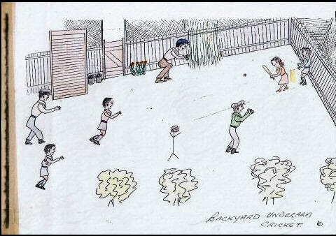 ![]() Backyard underarm cricket. Els is batting, Len bowls and Syd is keeping. |
