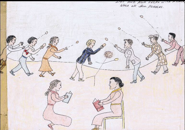 ![]() Kite production and a matter of priorities. Les needs rags to provide ballast in the kite tails. He tries to cadge more rags from Mum. But she is concerned that there will be no rags left to make dusters. Les pleads anxiously: "But Mum, we have to have tails for our kites." Note the flour: in those days, glue was concocted simply by mixing a flour and water paste. Apparently Mum gave in: see further down the page ... |